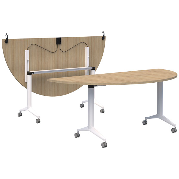 ACCENT BOOST SEMI-CIRCLE FLIP TABLE W1800 X D900 X H745MM WHITE BASE SNOW TOP