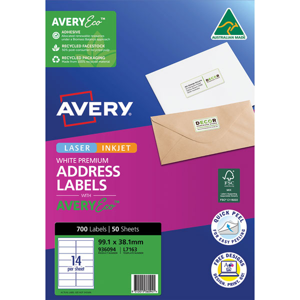 Customise your labels with our free and easy-to-use template software; Avery Design and Print - available at averyproducts.com.au/print