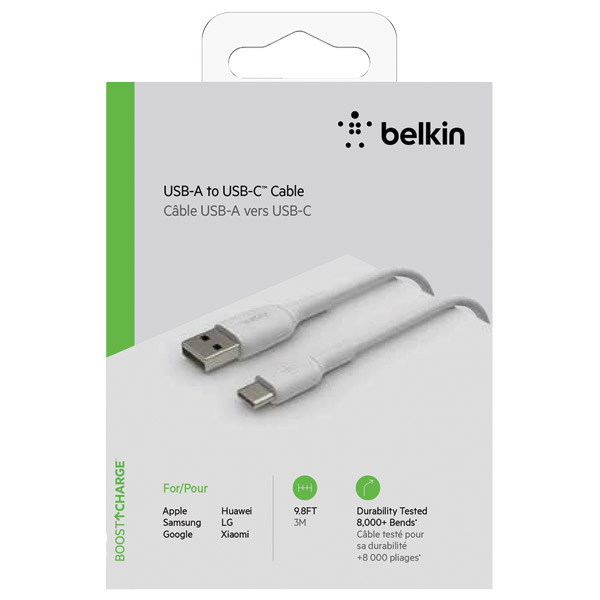 BELKIN BOOST CHARGE USB-A TO USB-C CABLE 3M WHITE