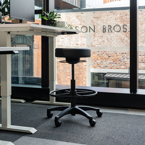 The Buro Polo Drafting Stool is a height-adjustable architectural stool that promotes active sitting.