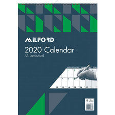 CALENDAR MILFORD EVEN YEAR A3 WIRO MONTH TO VIEW LAMINATED FSC 70 PERCENT MIX