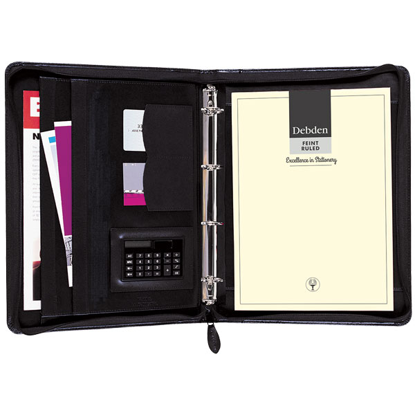 DEBDEN COMPENDIUM A4 4 RING ZIPPERED PU BLACK