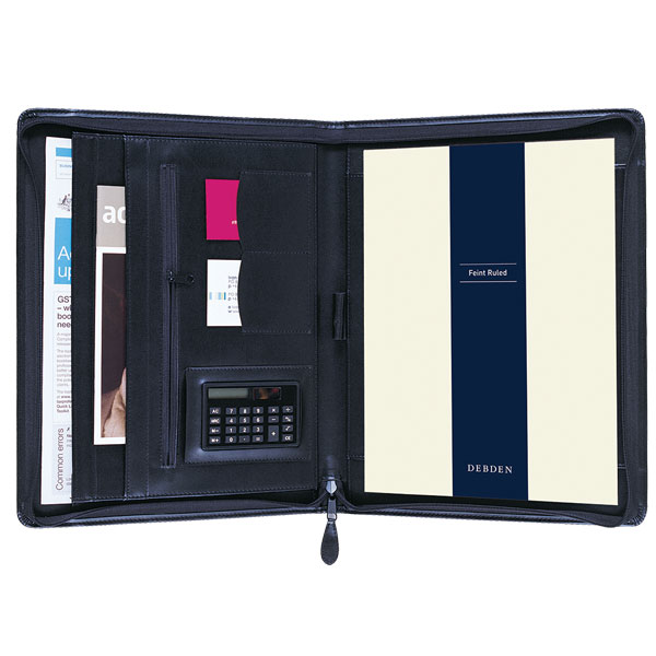 Includes pen loop, A4 ruled pad and business card holder