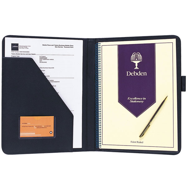 Includes A4 sized wiro notebook, pen loop, and business card holder