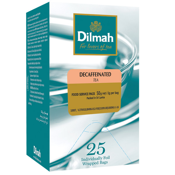 DILMAH TEA BAGS DECAFFEINATED BLACK TEA INDIVIDUALLY FOIL ENVELOPED BOX 25