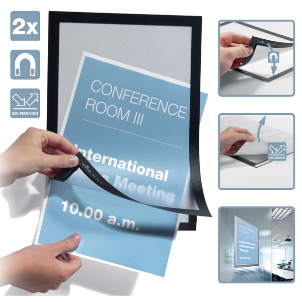 DURABLE DURAFRAME SIGN HOLDER ADHESIVE BACK A3 BLACK PACK 2