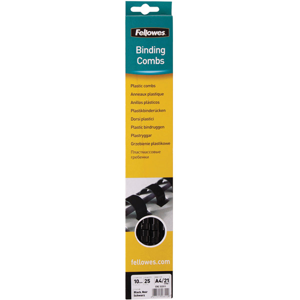 FELLOWES BINDING COILS PLASTIC A4 21 LOOP 10MM BLACK PACK 25