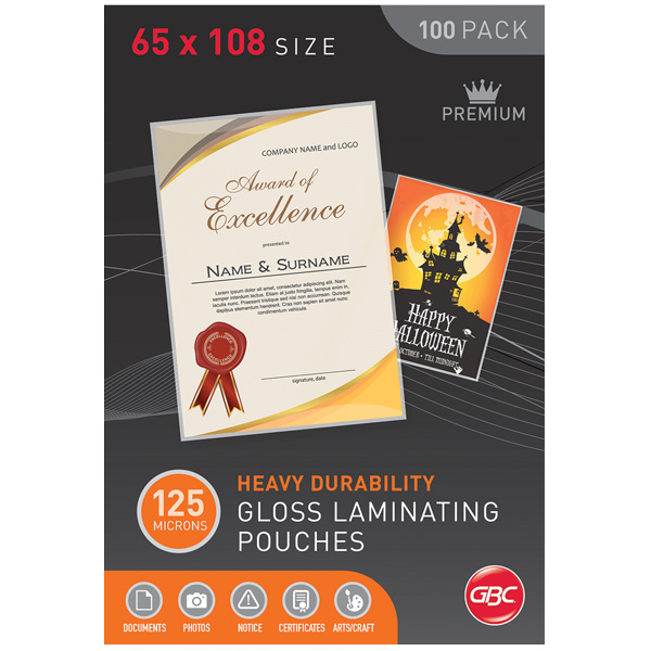 GBC LAMINATING POUCH 125 MICRON 54 X 86MM CLEAR PACK 100