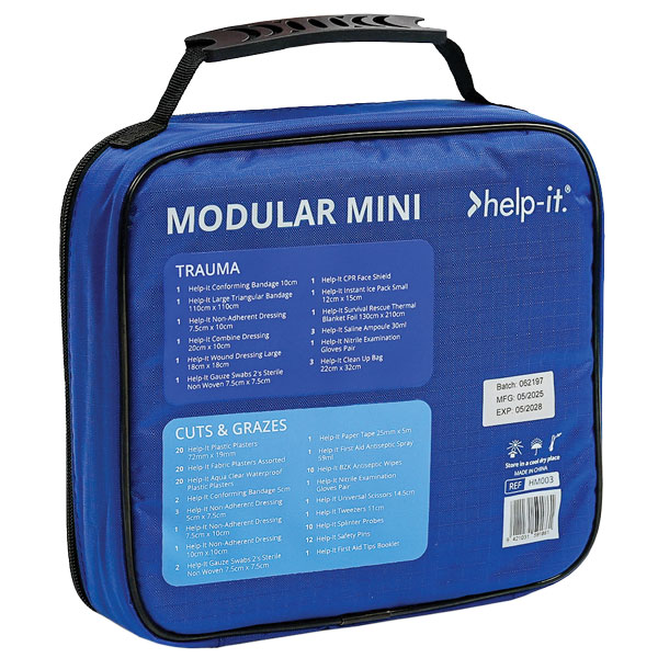 Injury-Specific: Includes dedicated modules for Cuts & Grazes & TraumaSimplified Maintenance: Expiry dates on each module mean you only check two dates, not individual itemsEasy Restocking: Used modules can be replaced individually to keep the kit fully stocked and always emergency ready