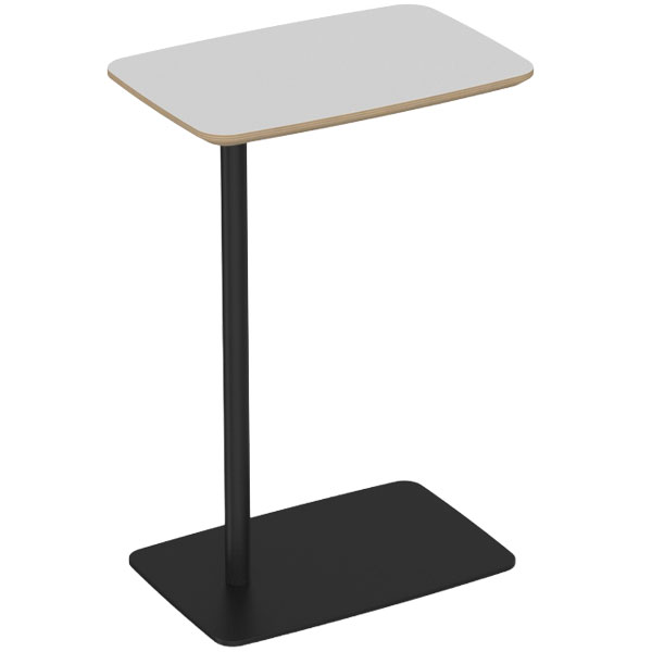 Cubit side table with a horizontal rotating 300mm x 450mm top and black powdercoat base with flat foot.