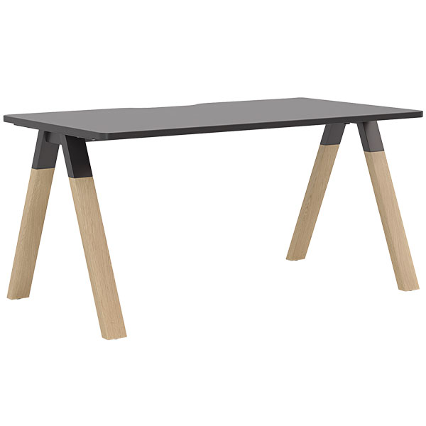 Ligna legs feature a black powdercoated connector bracket and solid oak legs with a natural timber finish