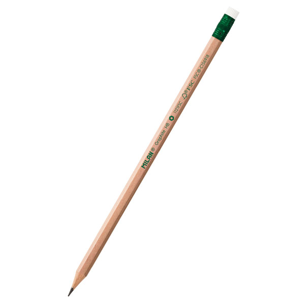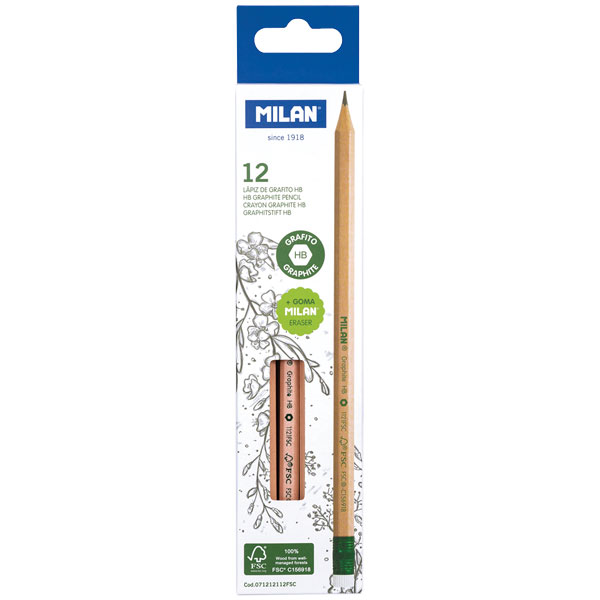 MILAN FSC 100% HB PENCIL WITH ERASER HEXAGONAL PACK 12