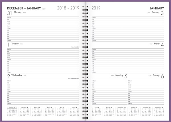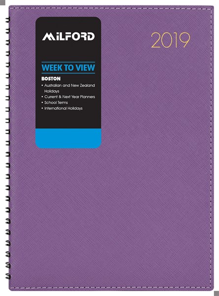 MILFORD DIARY BOSTON A43 PURPLE WEEK TO VIEW WIRO ODD YEAR