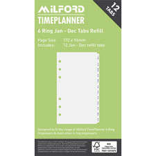MILFORD TIMEPLANNER ORGANISER REFILL 6 RING JAN-DEC TABS