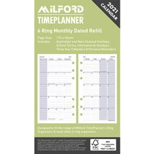 MILFORD TIMEPLANNER ORGANISER REFILL 6 RING MONTH TO VIEW DATED 2021