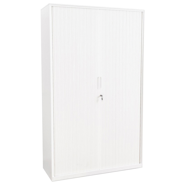 OPD OFFICEWARE TAMBOUR 3/ 4 TIER 2 ADJUSTABLE SHELVES W1200 X D500 X H1200MM MANNEX WHITE
