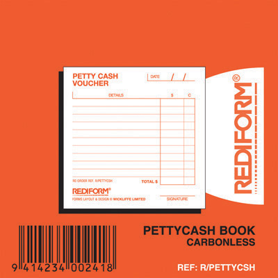 PETTY CASH BOOK REDIFORM R/PETTYCSH SINGLE W90 X L90MM CARBONLESS
