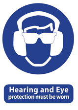 QSI SAFETY SIGN W240 X L340MM HEARING AND EYE PROTECTION