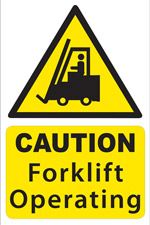 Sign reads Caution Forklift Operating