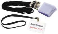 The kit contains 50 black lanyards with alligator clips, 50 pre punched card holders and 50 blank insert cards