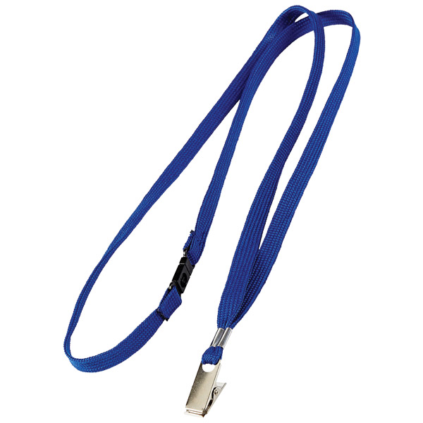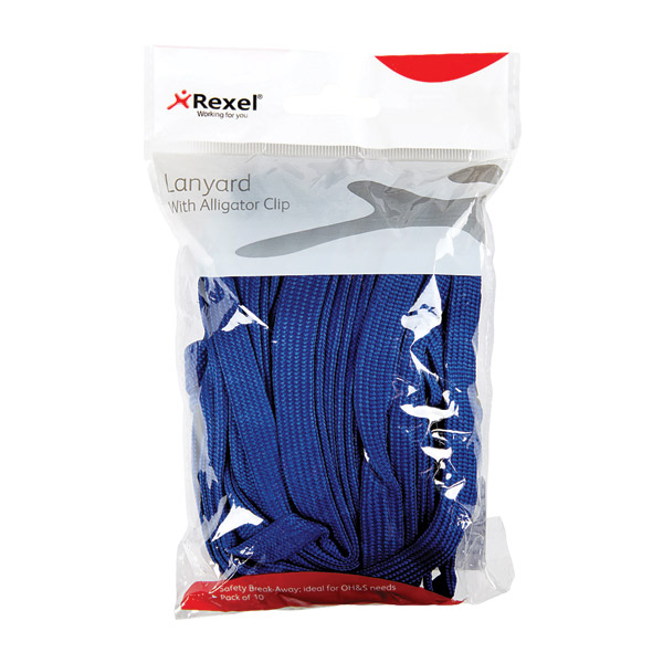 REXEL ID LANYARD FLAT STYLE WITH ALLIGATOR CLIP BLUE PACK 10