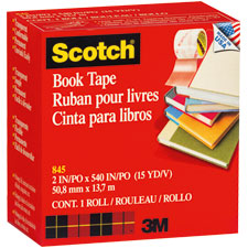 Scotch book tape 845 a tough crystal-clear transparent tape with a long-aging, synthetic adhesive that conforms readily to book contours and flexes with cover movements