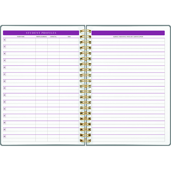 This Collins A4 Teacher Planner is designed to withstand daily classroom use. It is wiro bound with a sturdy hardboard cover that will provide durability and strength. The planner features four years of reference calendars with undated internal pages, making it ideal for use across multiple teaching years. Each term is indexed with laminated, heavy-duty card tabs for easy navigation and long-lasting use. There are 240 pages of thoughtfully designed specialised content that will meet teacher's needs and also offer flexibility. A4 size teacher's planner with 80gsm white paper Includes reference calendars, NZ public holidays, key dates, language week information, yearly goals as well as year and month planners Classroom layout templates and student information pages Te Reo Maori resources including Karakia, Pepeha, Taku Whakapapa, and useful words and phrases.