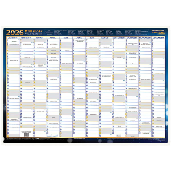 Includes all Australian New Zealand holidays and important dates, with shaded weekends for easy weekly planning