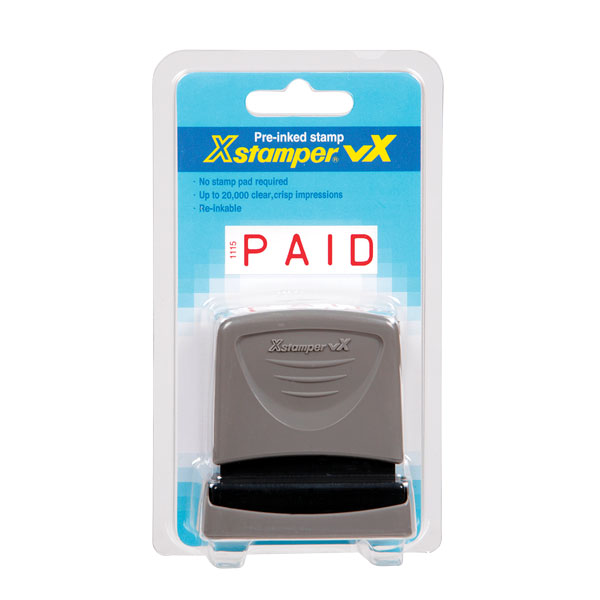 XSTAMPER 1115 PRE-INKED MESSAGE STAMP PAID 42 X 13MM RED