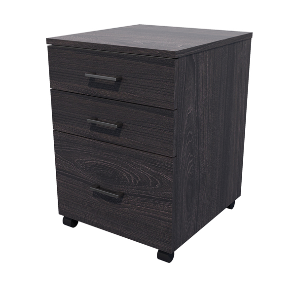 ZEALAND MOBILE 2 DRAWER 1 FILE LOCKABLE W465 X D500 X H660MM CARBON AND WASHED MAPLE